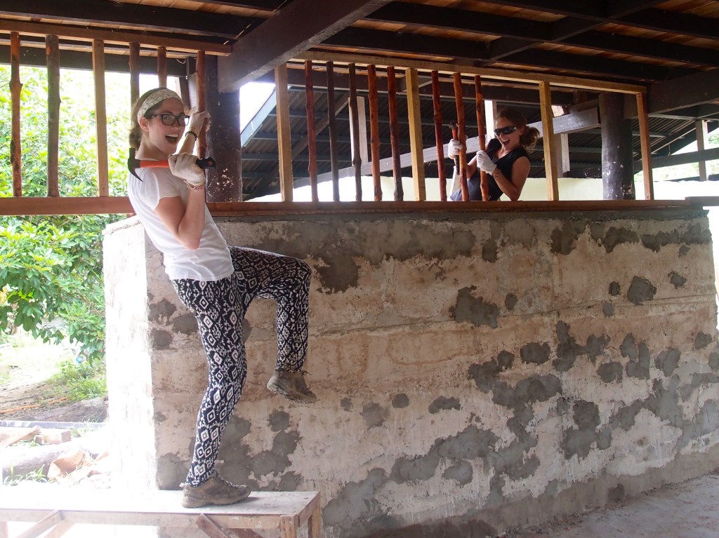 Woensdag was onze laatste werkdag in Tinangol en gelukkig voelde ik me weer goed genoeg om weer mee te werken. We hebben die dag keihard gewerkt aan de vloer van de markt in de gloeiendhete zon. Na het werk liepen we voor de laatste keer het dorp uit. Ik vond het heel gek om dat achter me te moeten laten: de bekende gezichten en omgeving. Donderdag was de laatste dag in het kamp. De laatste dag met de veel te lieve staf. We hoefden niet te werken, omdat deze dag bestond uit het voorbereiden van het ‘Farewell Diner’. We kregen les in het weven van bamboe in een soort kubus waarin vervolgens rijst gekookt wordt. We hebben pudding gemaakt. We geholpen met het maken van saté. Toen het uiteindelijk etenstijd was, stond er enorm veel eten klaar. Er was kip voor ons geslacht en gebraden op een stok boven een vuur. Deze kregen we als geheel voorgeschoteld en mochten we in stukken snijden. Het eten was heerlijk, maar veel te veel. Gelukkig waren er heel wat stafleden en een paar buurtbewoners die ook gezellig mee deden. De avond liep snel tegen een eind en het afscheid kwam veel te snel. Omdat we de volgende dag een busrit van 7 uur moesten overleven, zijn we uiteindelijk niet te laat naar bed gegaan.