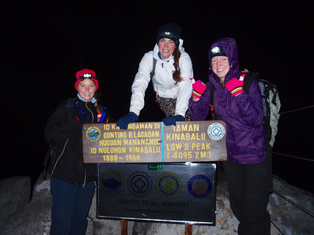 Die zondag was het voor Georgie, Claire en mij tijd voor de grote uitdaging. De grootste berg in Zuidoost Azie, Mount Kinabalu, beklimmen (4095 m). Wauw. Ik heb daar geen woorden voor. Dit was voor mij de eerste keer dat ik echt een trekking heb gemaakt en ik vond het heerlijk. Er waren natuurlijk momenten dat ik er even doorheen zat, maar als je eenmaal de top heb bereikt dan doet dat er allemaal niet toe. Het programma zag er als volgt uit. We vertrokken rond half 10 naar boven, rond half 4 kwamen we aan bij de lodge. Waar de verwarming het natuurlijk niet deed en het dus ijskoud was. Daar kregen we een uitgebreide maaltijd en doken we op tijd ons bed weer in. Moe van de dag, viel ik gelukkig snel in slaap. We moesten namelijk 2 uur ’s nachts er weer uit. Na een weer een heerlijk eerste ontbijt, vervolgde we onze weg naar de top. Hier moet ik bij zeggen dat het ontbijt bestond uit een buffet van: wentelteefjes, pannenkoeken enzovoort. Dat was echt een hemel na elke dag rijst of klef geroosterd brood als ontbijt. Rond kwart voor 5 kwamen we ijskoud en doodop aan op de top. Net op tijd voor een zonsopgang die jammer genoeg verscholen ging achter een enorme wolk. Te koud, te blij en te enthousiast dat we de top hadden bereikt, boeide het ons vrij weinig dat de zonsopgang niet zoveel voorstelde. Daarna werd het tijd voor onze terug tocht en onderweg naar beneden kregen we ons tweede ontbijt. Rond half 2 ’s middags kwamen we denk ik weer beneden aan. Toen werden we terug gebracht naar Bongkud waar een douch op ons wachtte.