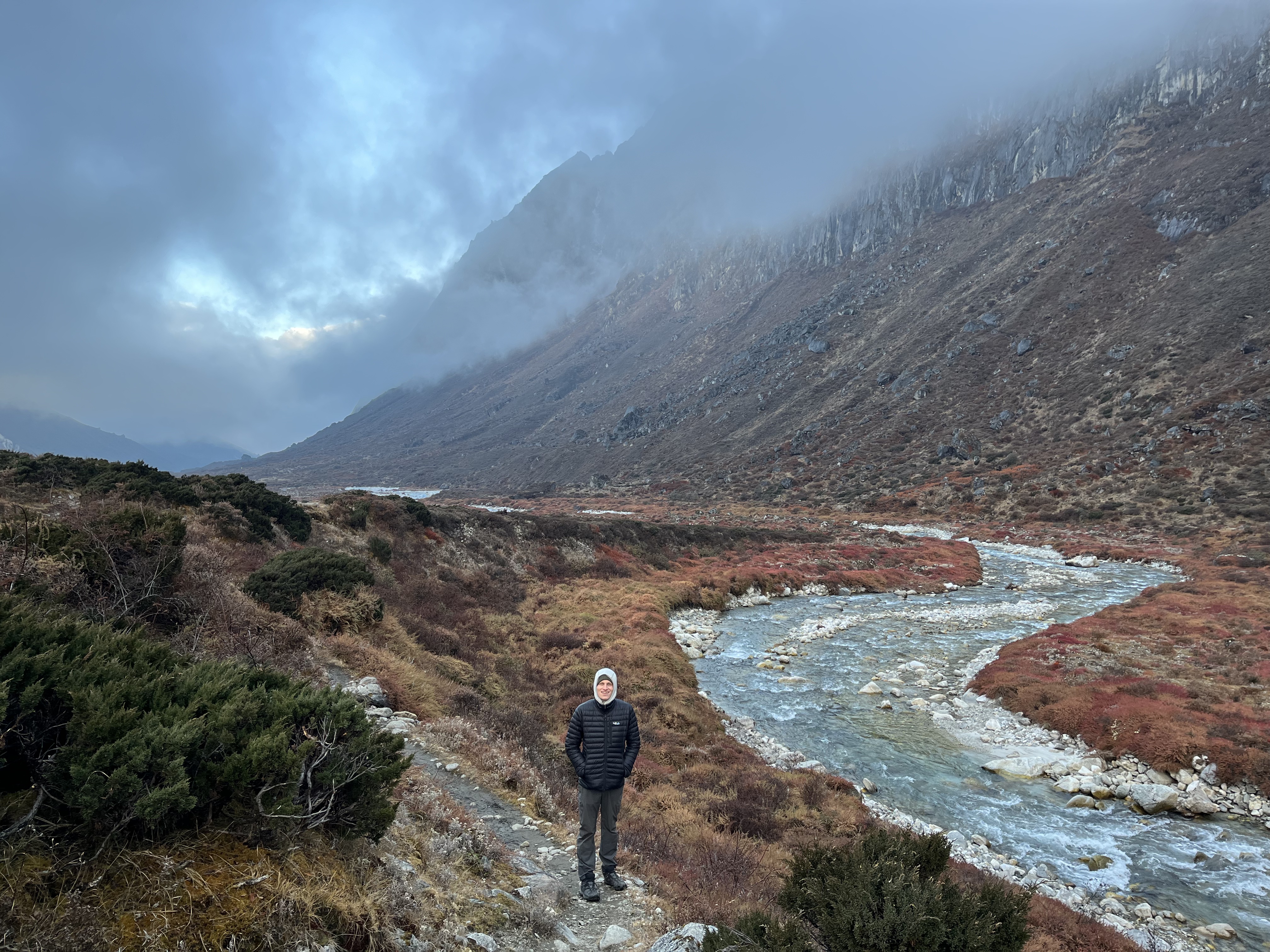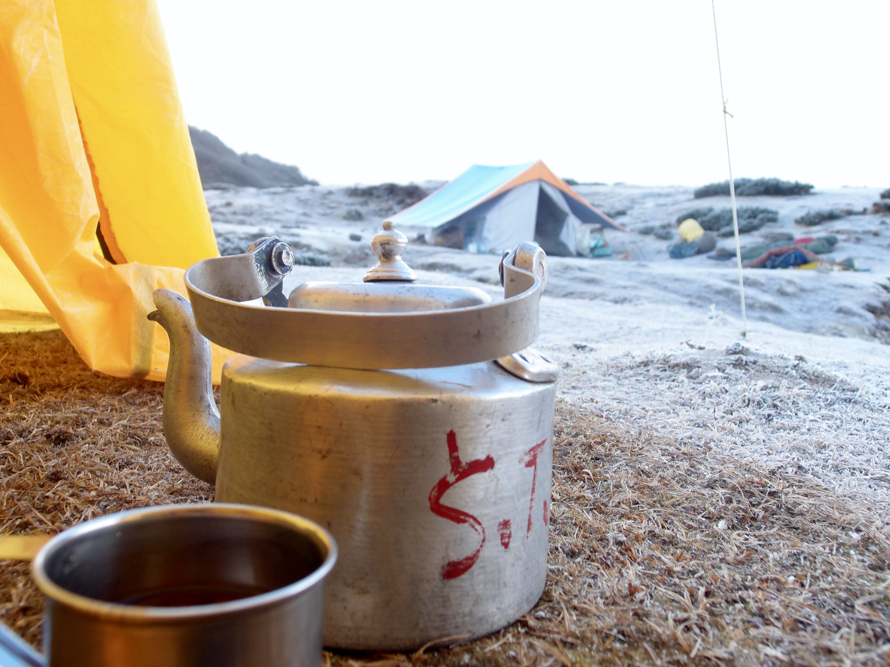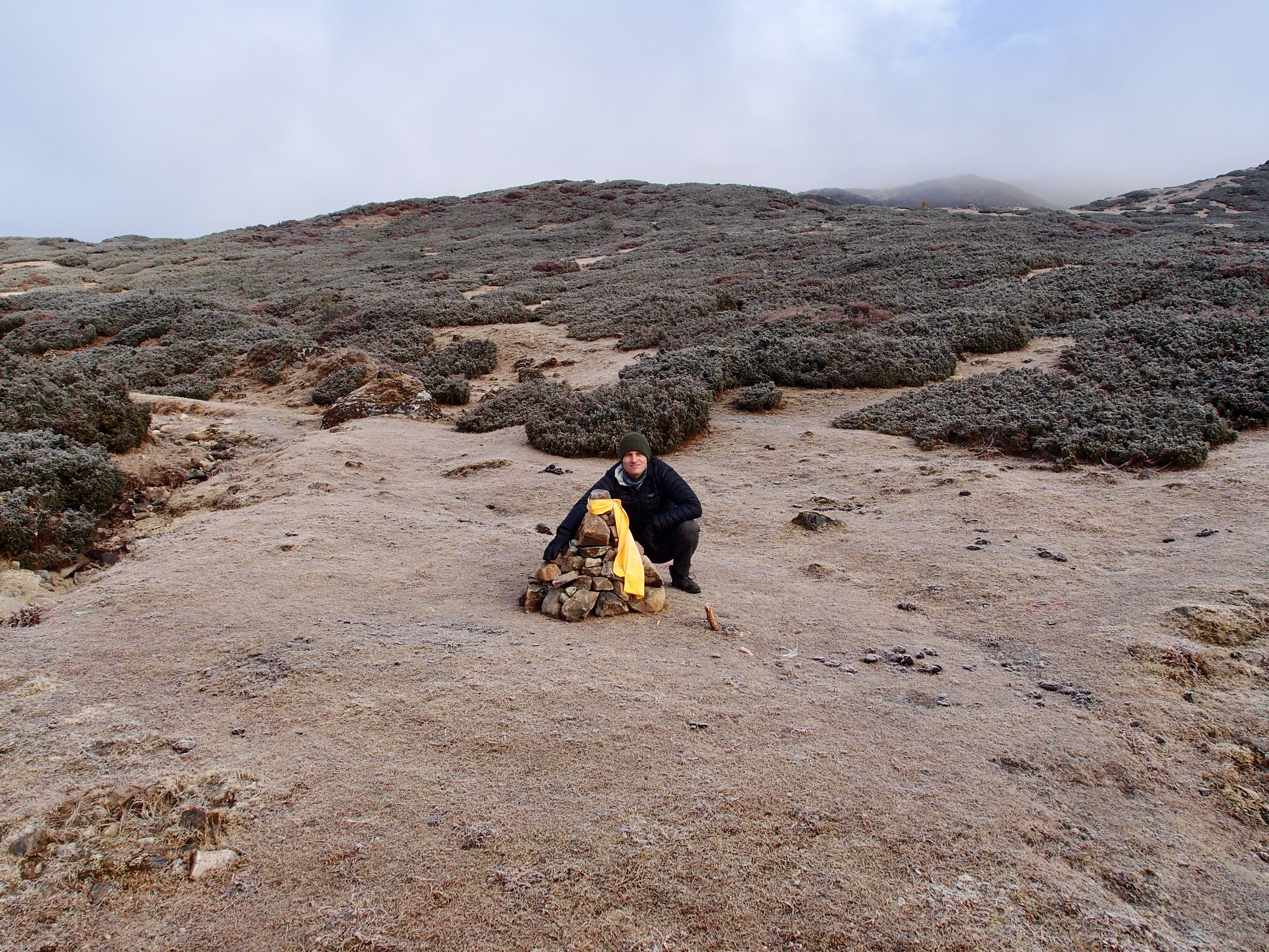 We arrived in Dzongri in the early afternoon, in a cloud. It was cold and you could barely see more than 5 meters ahead. We stayed most of the afternoon in our tent. This was the first really cold tent, and Jelle figured that his sleeping bag was a bit colder than mine. He was having a hard time during the night…