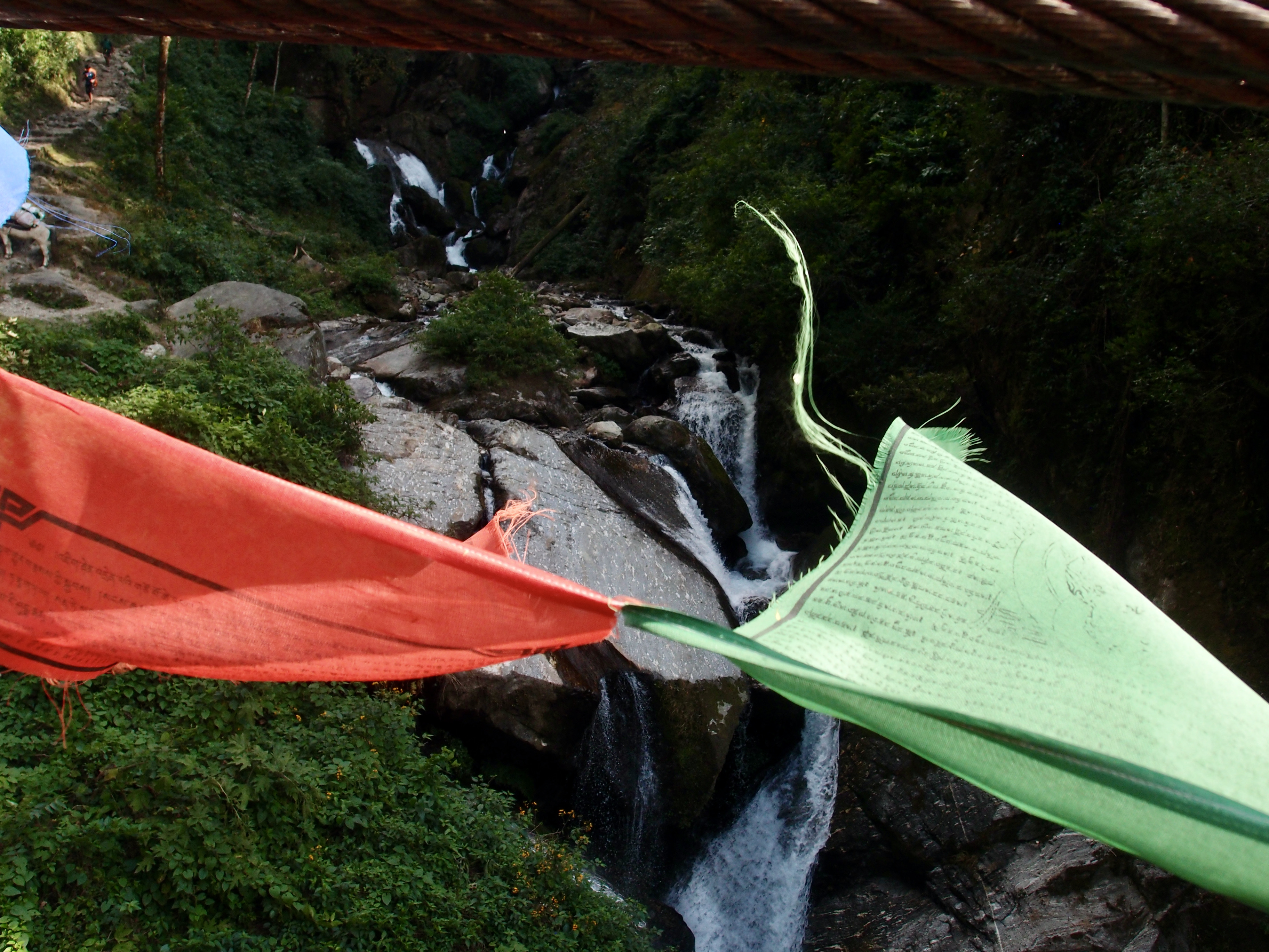 The worst was yet to come, because at the moment we could see our final destination the path was nowhere to be found. The floods in the beginning of October had flushed away part of the path, and the other parts were completely overgrown. Our whole crew was getting their Ghorka’s from their sheaths with grins on their face. Happy to use them.