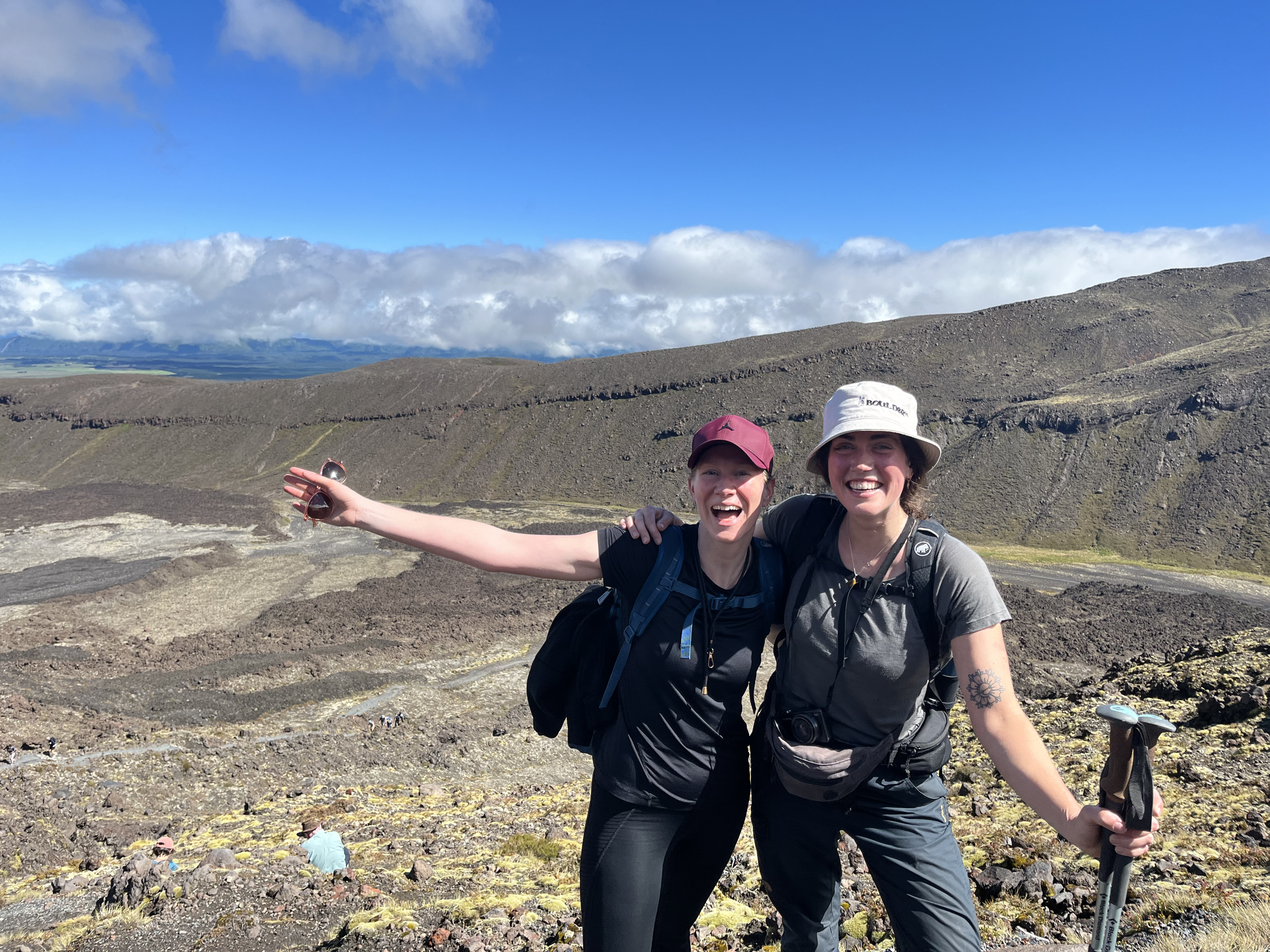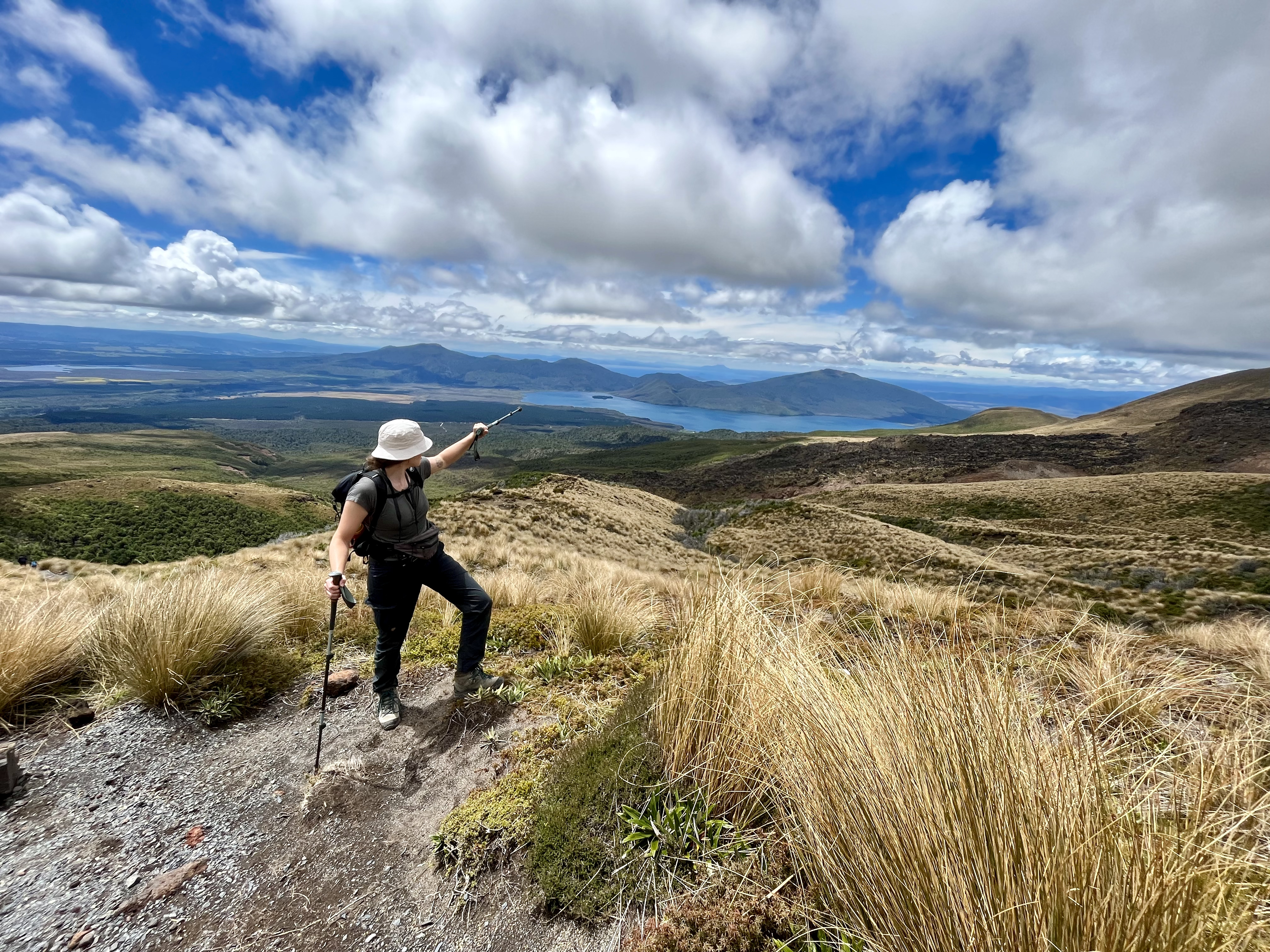 While Lisa was brought to the start of the hike with a (in my opinion very expensive) shuttle service, Jelle was my (free <3) chauffeur that day. He dropped me of at the start. Such a sweetheart. Lisa is doing a big trip by herself through New Zealand and Australia, and some parts she booked a tour. Now she was with a group of 7 other people doing this trek. We did talk with the others quite a bit, but most of the time we were walking in our own space, and we had a lot of catching up to do. You see in the Netherlands we barely see each other (mostly only a few times a year), so it was extra special to do such a beautiful hike together. While the hike is considered hard, and even a part is called the devils climb, in my opinion it was a very doable hike. (Although that might have been because I was used to my heavy backpack of the 4-day hike, and now only carrying a daypack). The views were incredible, and the weather was amazing. I cannot describe in words how magical the landscape was, and how much it changed through the hike (volcanic, grasslands, forest). It was very special.