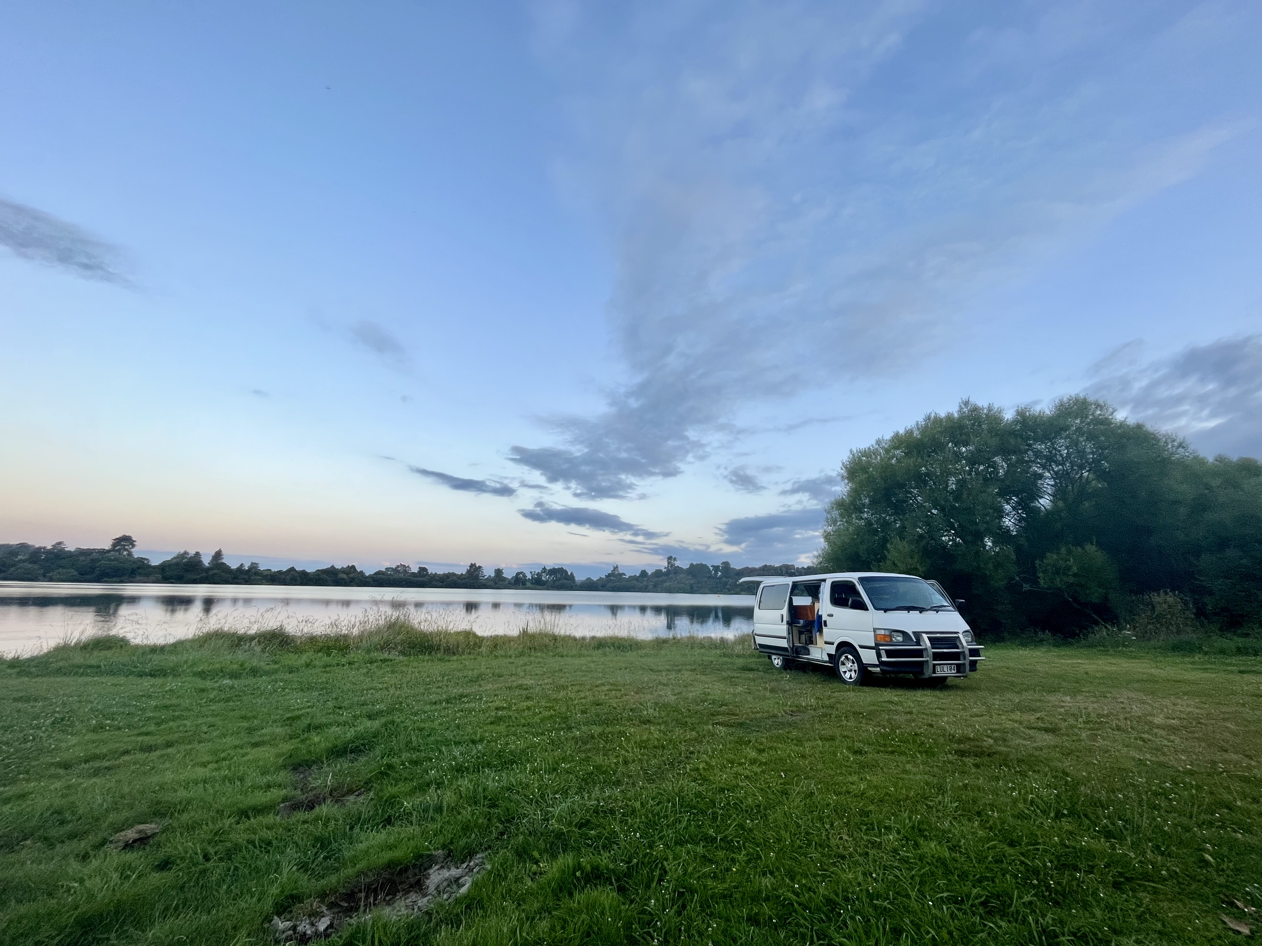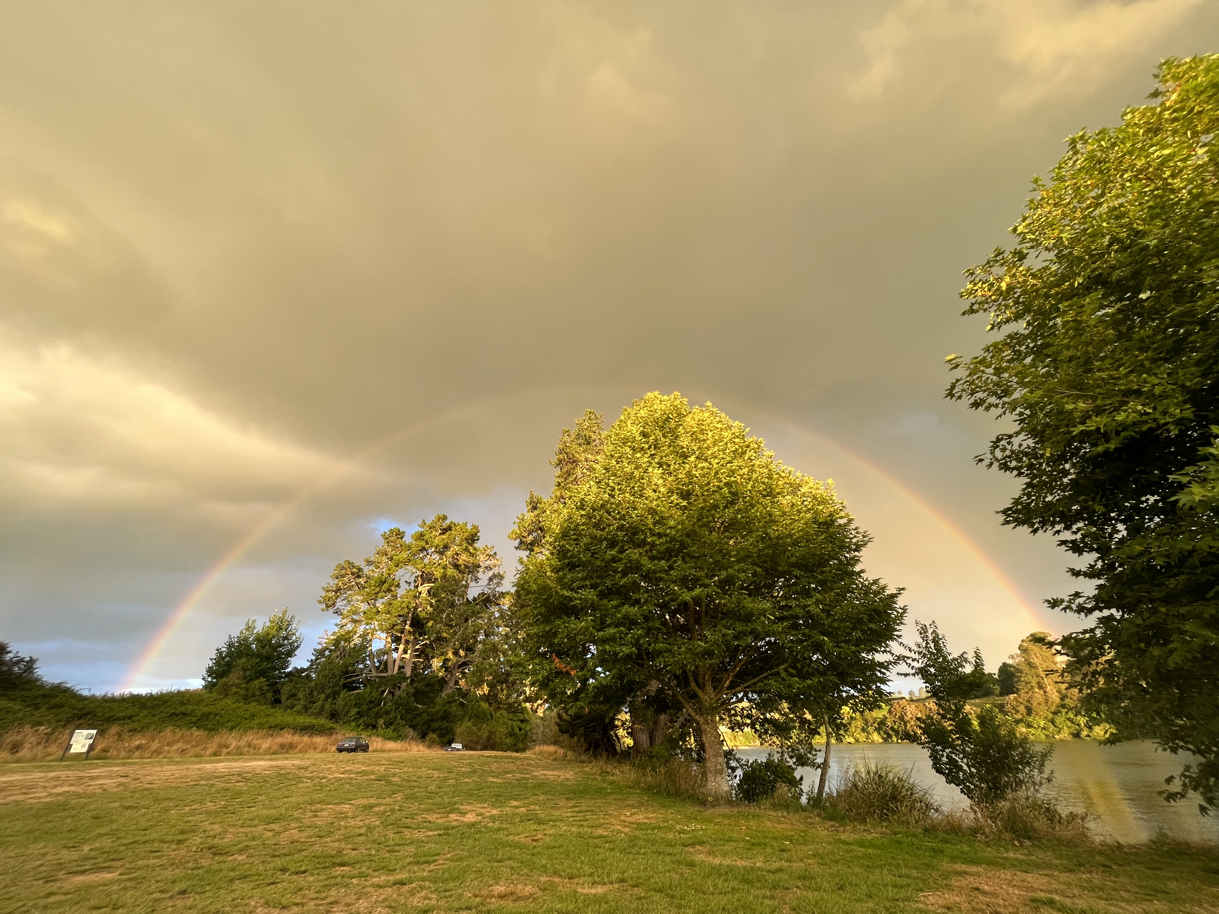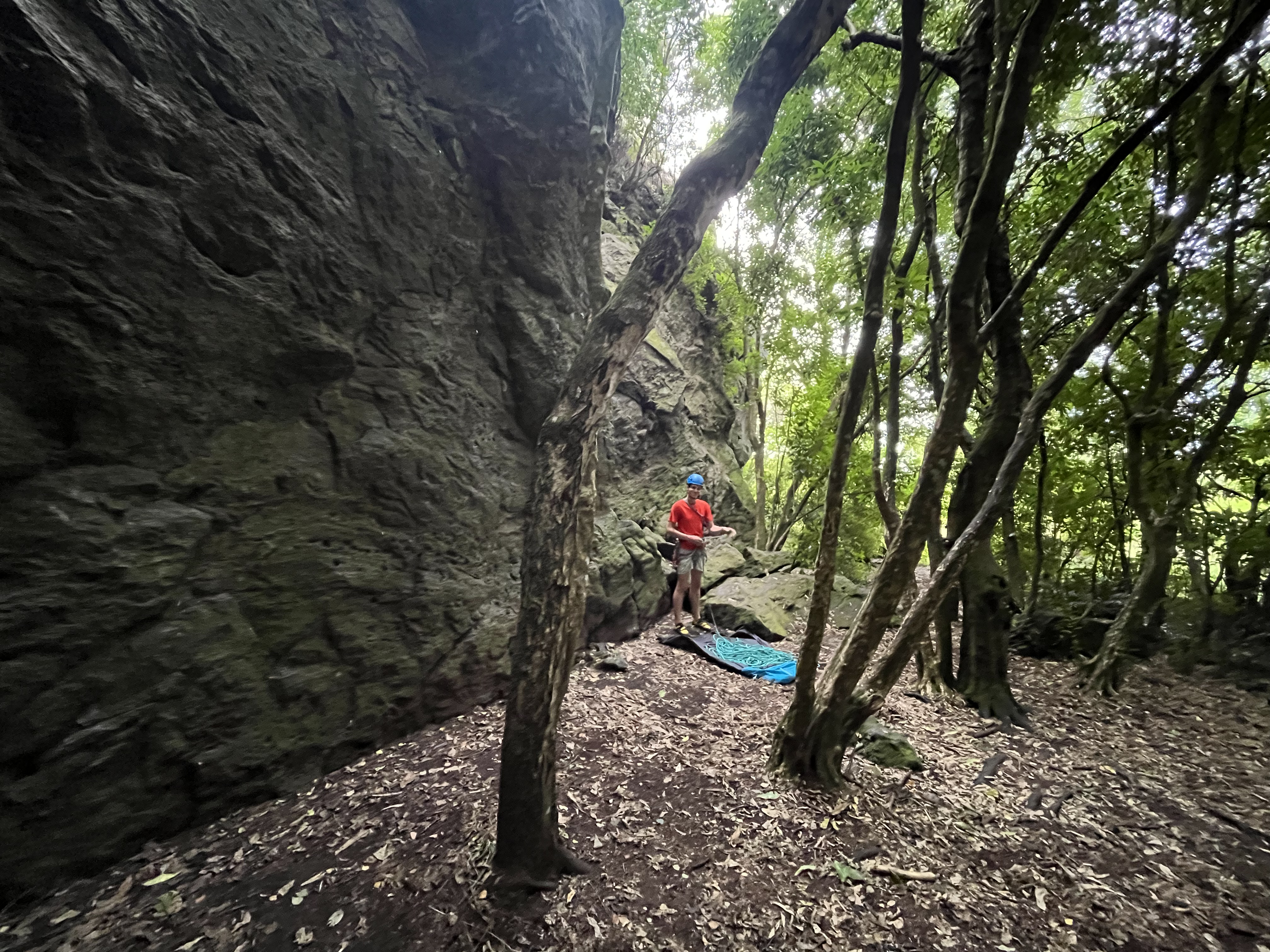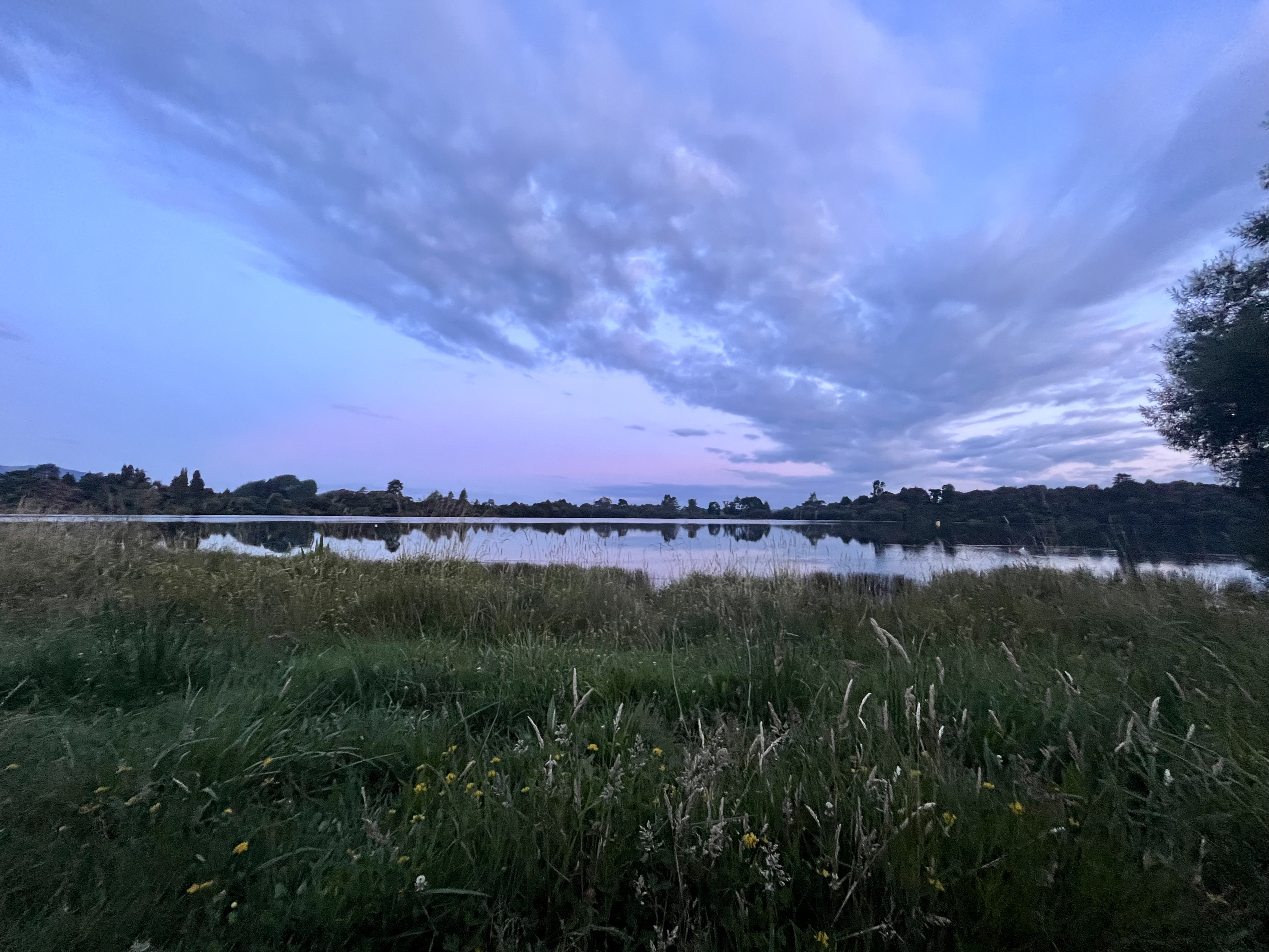 The next day it was time to use our new rope! Unfortunately, it was a very hot day, and because of a lazy morning we only made it to the crag (Wharepapa rock, Castle rock) around 11-12AM. Bryce called this a commercial crag, because you had to pay a 10 dollar entry for maintenance. In my opinion there were a few too many thistles for this amount of money, but the rock was beautiful, sharp, and hot. In the beginning we still had some shade which we enjoyed. Funny enough this rock was made very beginner friendly, with little ropes attached to the anchor, which made it possible to pull your own rope through the anchor without leading it! Jelle, always down for a lead, decided to lead anyway. Me always down for top-rope, just followed him and cleaned the anchor. After a few climbs we realized we got a bit tired and annoyed by each-other. The shift from relatively structured home-base in sacred earth, still needed to time to adjust. After talking it out, we decided to call it a day and drive in the direction of our next adventure. We stayed the night at Lake Okaro Campsite just outside the sulfur smell cloud surrounding Rotorua, reminding us of the volcanic activity in the area.