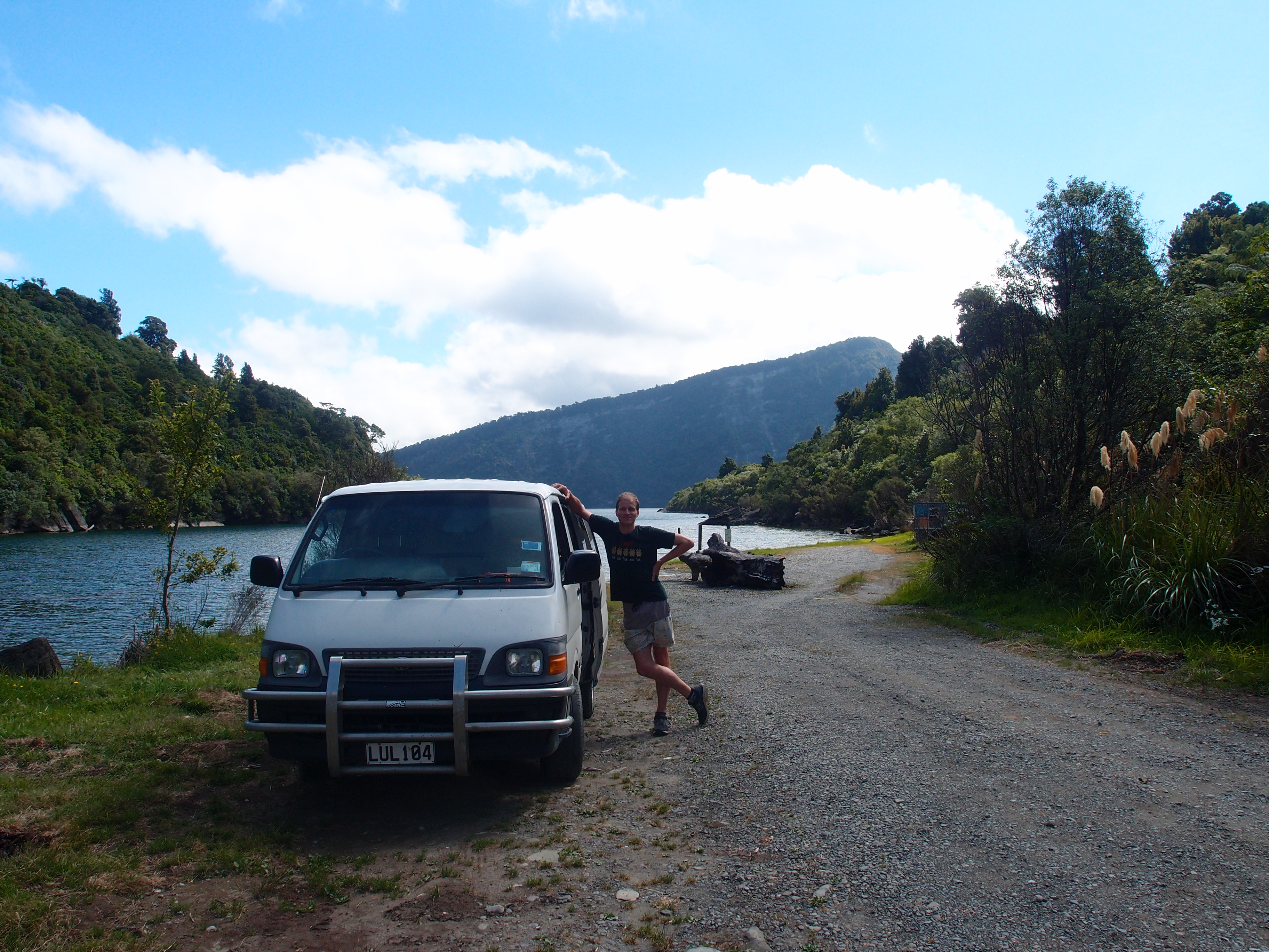 After having changed the tire, and showering our saviors with gratitude, we stowed our packs in the back of Tula, and very carefully drove down the gravel road. What an amazing thing it was to sit in our home again, instead of on a grassy floor. Exhausted but proud of our overcoming of these obstacles, we left Waikaremoana behind us.